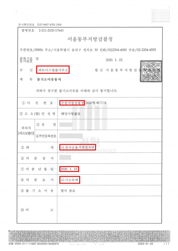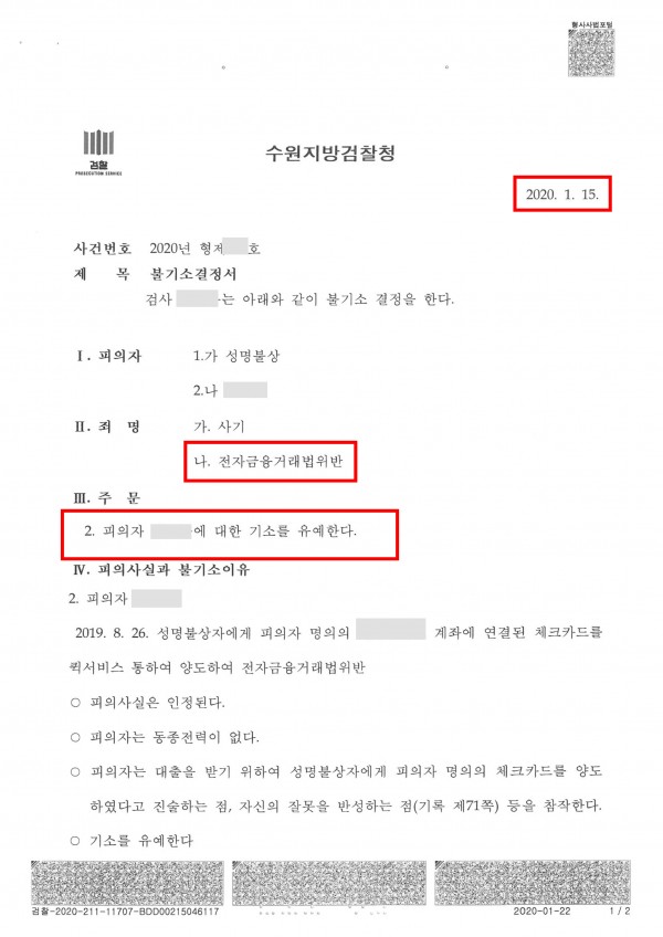 [형사] 기소유예 / 전금법(전자금융거래법위반)