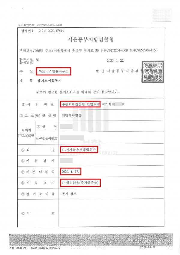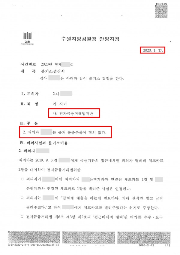 [형사] 혐의없음 / 전금법(전자금융거래법위반)