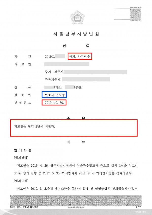 [형사] 징역 2년(누범기간) (구형 : 징역 7년) / 보이스피싱 사기 페이지 정보 관련링크 본문 [본 사건의 특징] 본 사건은 누범기간임에도 선방하여 의뢰인님께 감형 시켜드린 사안으며, 공문서위조 행사에 대해서도 방어해드린 사례입니다. 이전글 다음글 목록