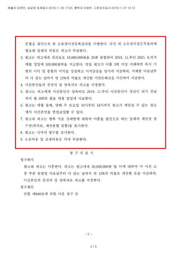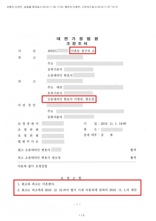 반소원고(의뢰인) 청구 인용, 이혼 등 청구(가사조정)