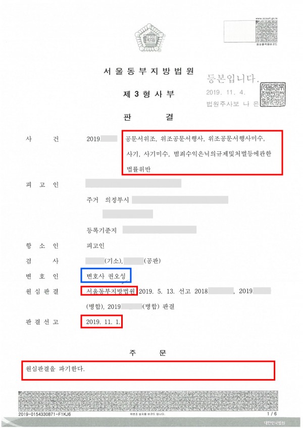 [형사] 피고인(의뢰인) 항소 인용 (1년 감형) / 보이스피싱 사기, 공문서위조, 위조공문서행사, 범죄수익은닉의규제및처벌등에… 페이지 정보 관련링크 본문 [본 사건의 특징] 해당 사건은 검사도 부대항소를 했던 사안이었습니다. 그럼에도 감형을 성공시켰던 사례입니다. 이전글 다음글 목록