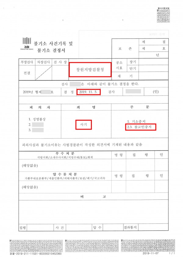 [형사] 참고인중지 / 사기