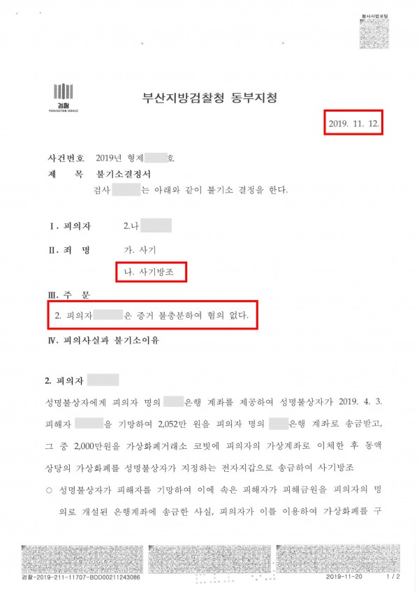 해당 사건은 보이스피싱 가담 유형 중 '알바형(가상화폐구매대행형)'으로 최근 들어 많이 연루되는 사건이었습니다.