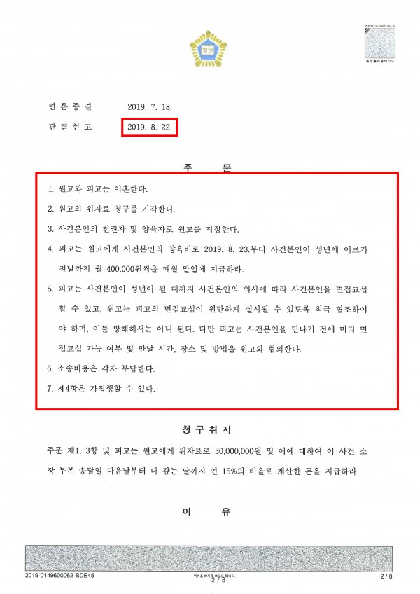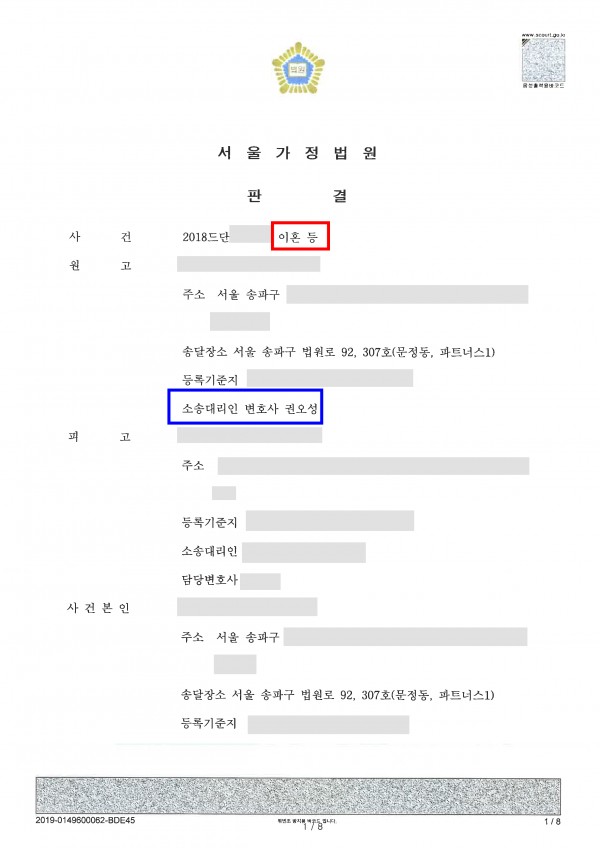 [가사] 원고(의뢰인)청구 인용 (원고와 피고는 이혼하고, 사건본인의 친권자, 양육자로 원고를 지정한다. ) / 이혼 등 청구 페이지 정보 관련링크 본문 [본 사건의 특징] 해당 사건은 심각한 폭력성향과 의부증으로 이혼을 원하지 않았던 피고를 상대로 이혼에 성공한 사례였습니다. 이전글 다음글 목록