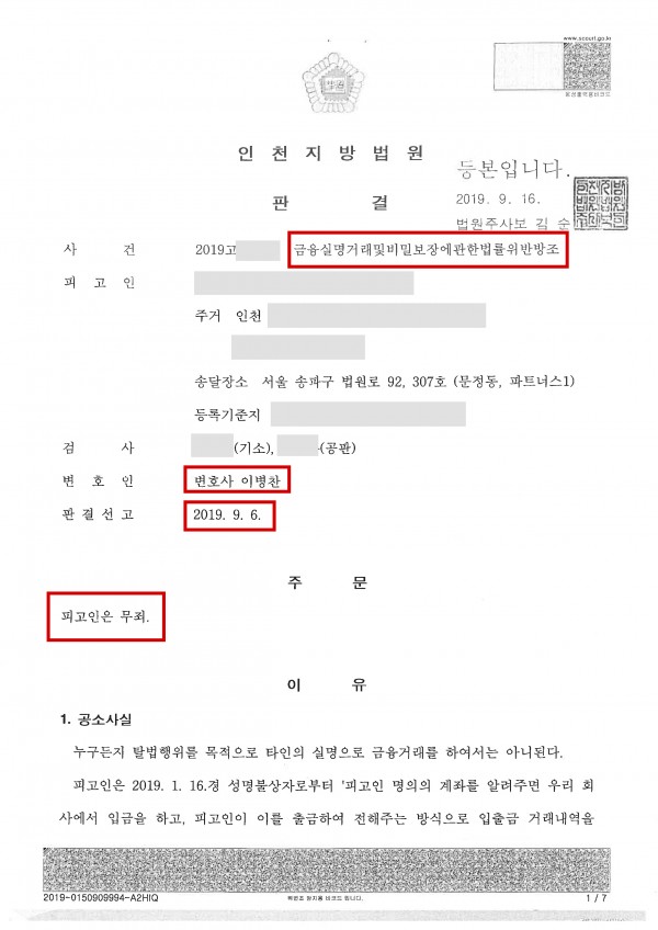 [형사] 무죄 / 금실방(금융실명거래및비밀보장에관한법률위반방조) 페이지 정보 관련링크 본문 [본 사건의 특징] 해당 사건은 국내 최초로 금융실명거래 및 비밀보장에 관한 법률 위반 방조 사건에 대해 무죄 판결을 받게 해드린 사안이었습니다. 이전글 다음글 목록