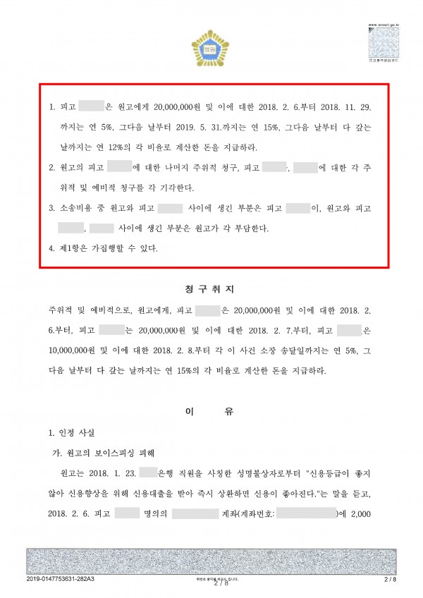 [민사] 원고(상대방) 청구 기각 (1000만 원 지급하라는 상대 청구 기각) / 불법손배청구 페이지 정보 관련링크 본문 [본 사건의 특징] 해당 사건은 '보이스피싱 민사소송'이었습니다. 이전글 다음글 목록