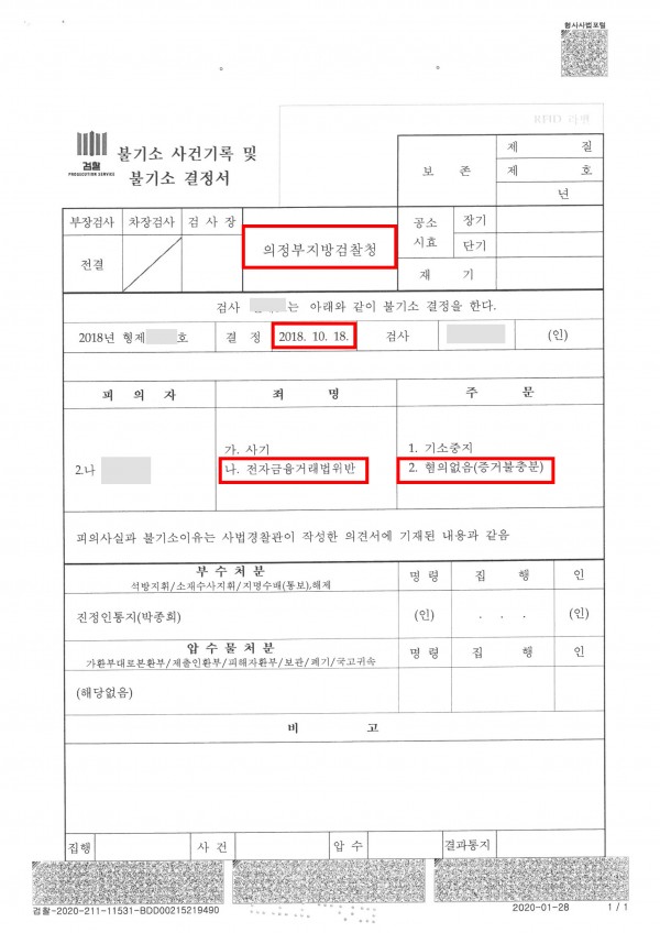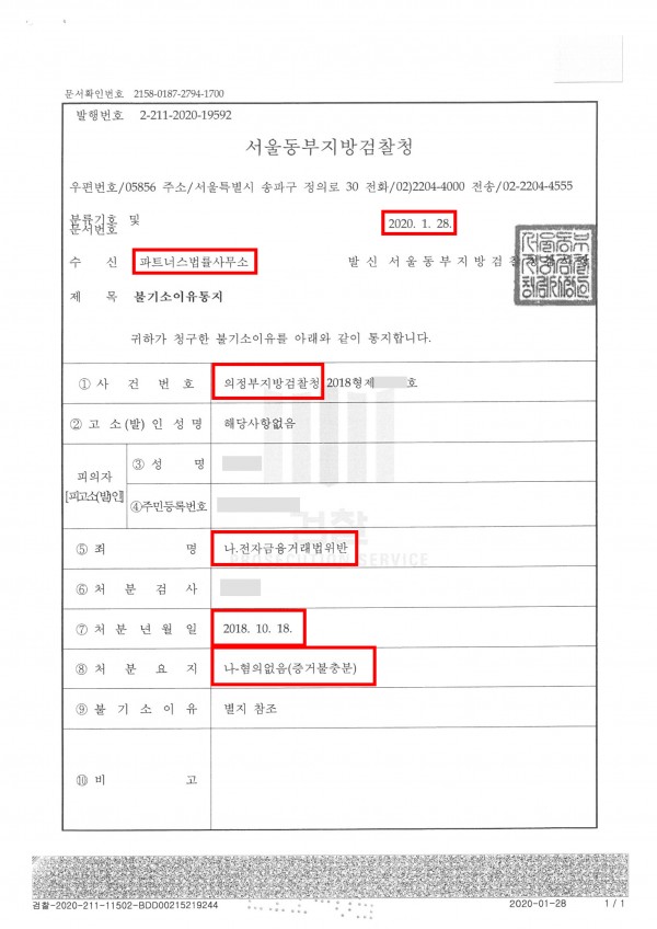 [형사]전금법(전자금융거래법) 위반 혐의없음