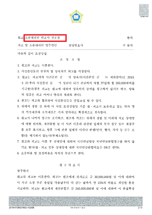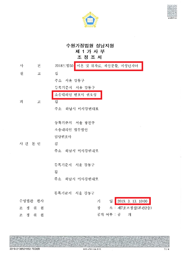 [가사조정]이혼 및 위자료, 재산분할, 미성년자녀