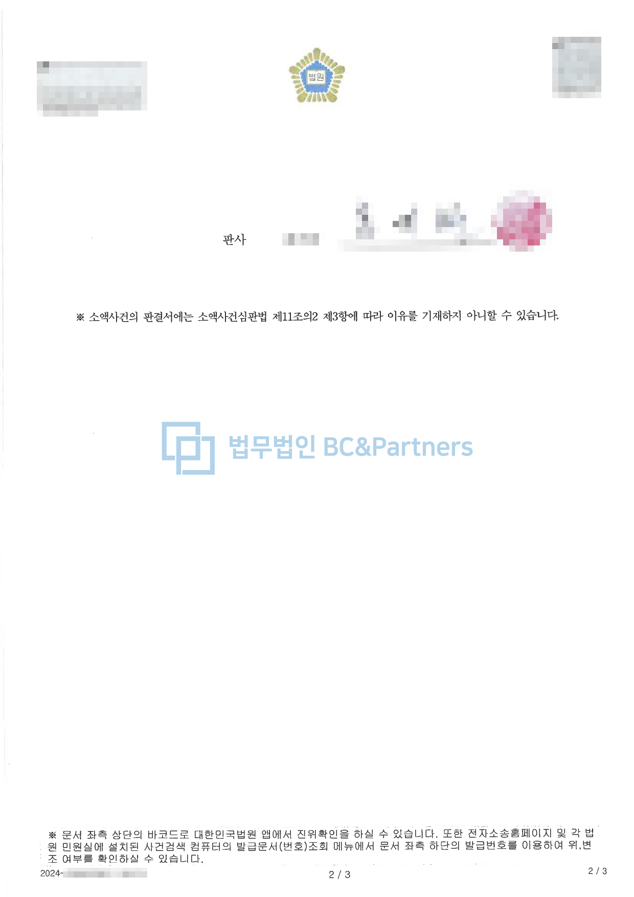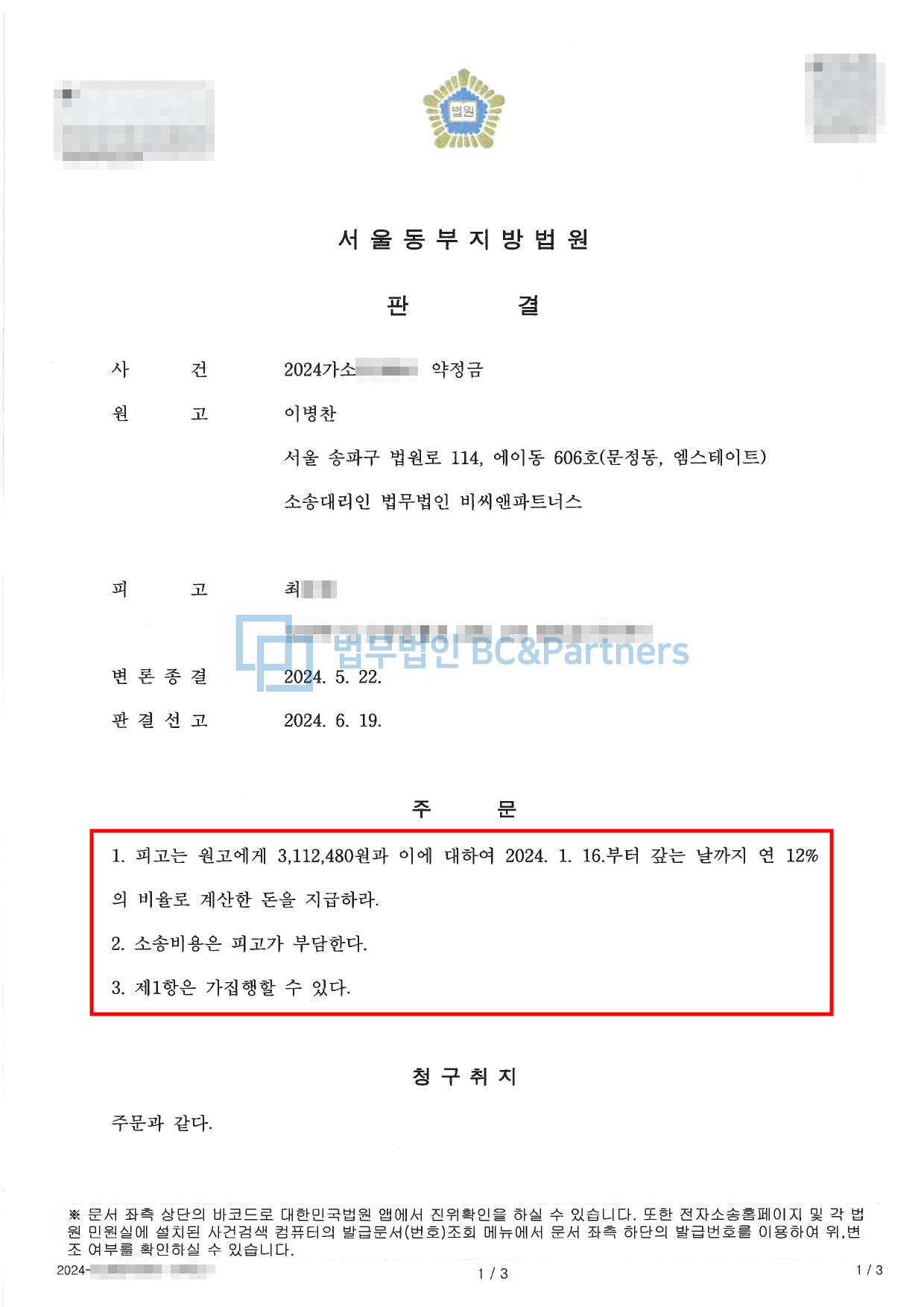전부승소 / 서울동부지방법원 / 2024.06.19.