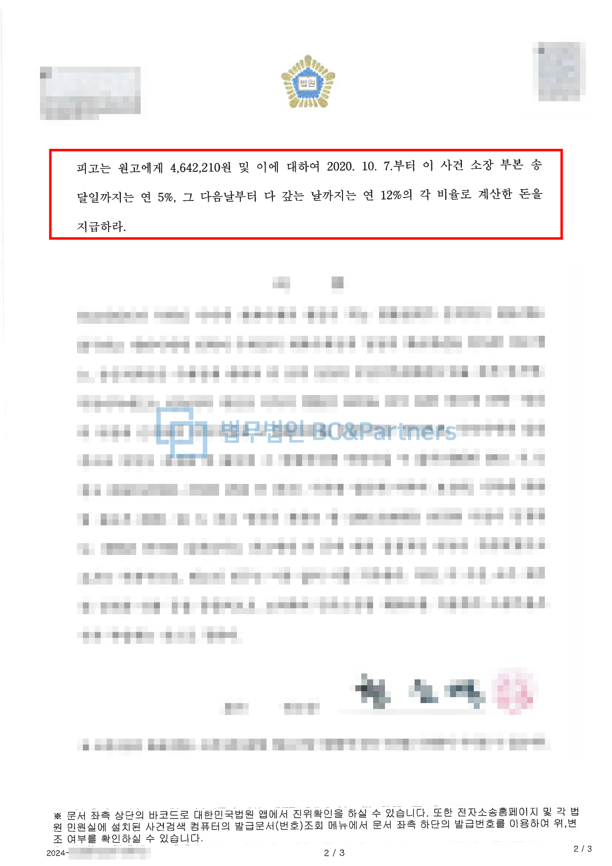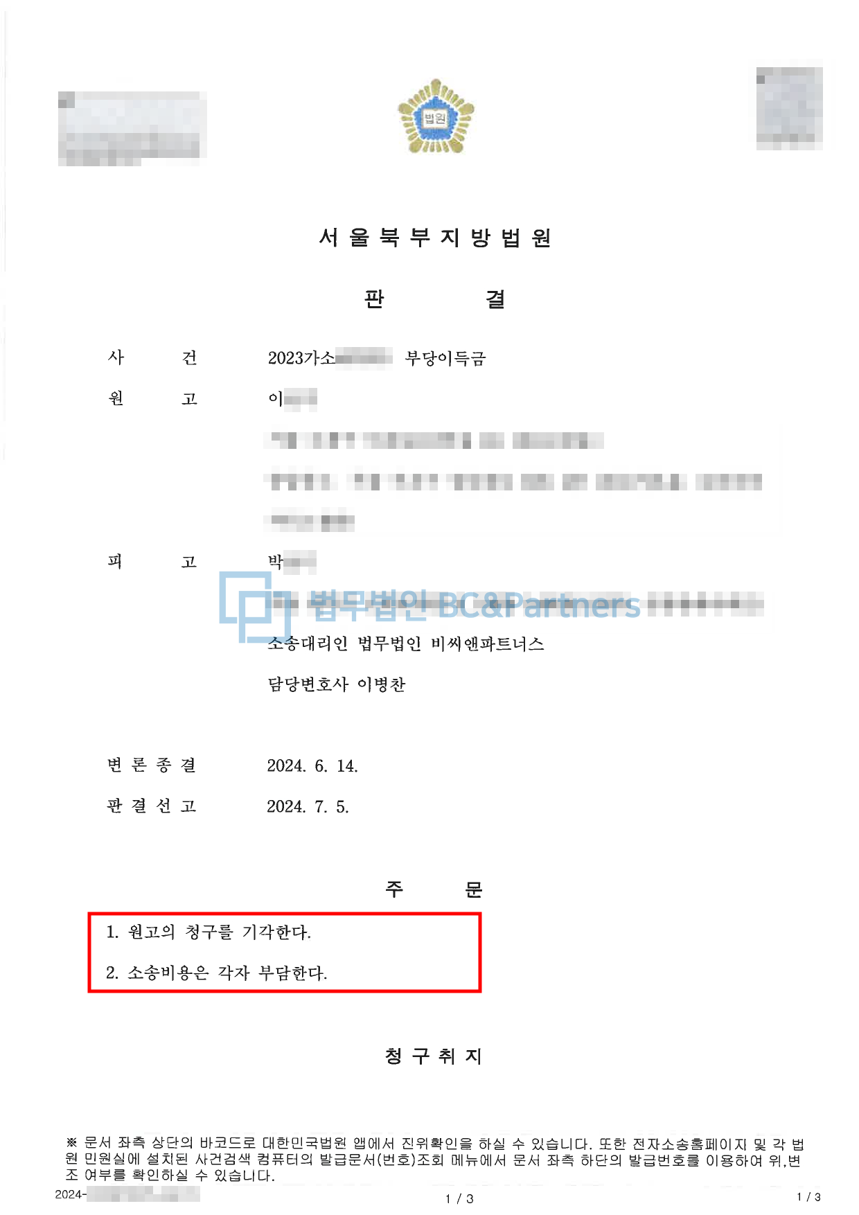 [민사]ㅤㅤ<부당이득청구(보이스피싱 민사 방어)>2024.07.05.