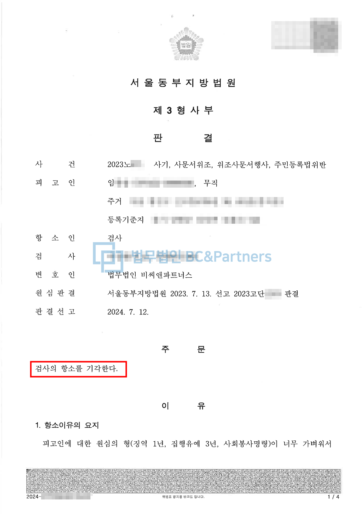 [형사]ㅤㅤ<사기 등(보이스피싱 현금수거책>2024.07.12.