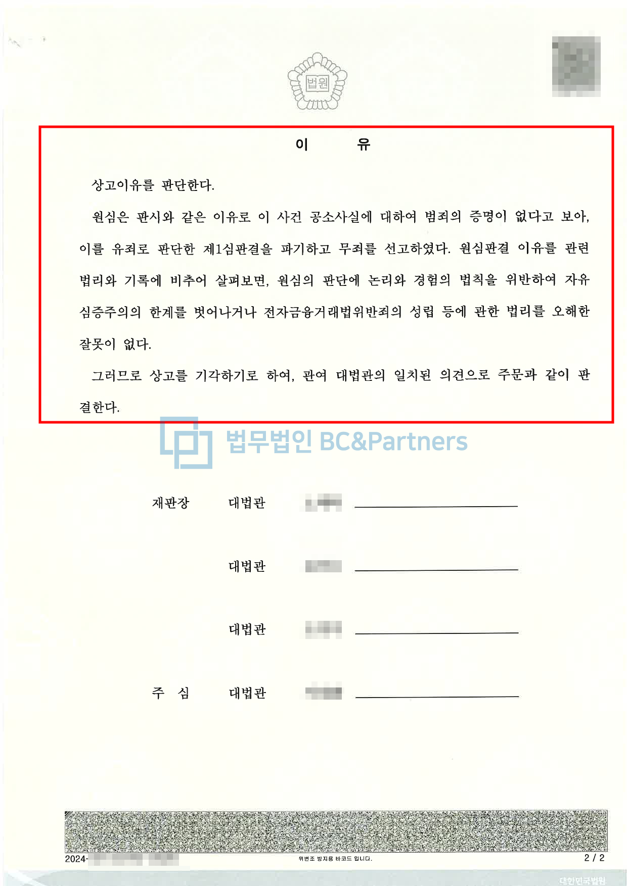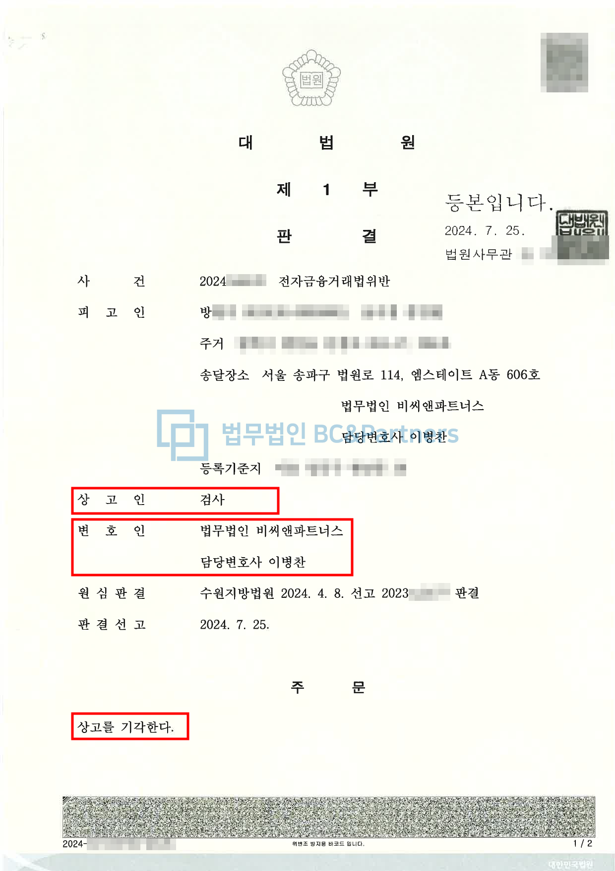 [형사]ㅤㅤ<전자금융거래법위반(보이스피싱 전달책)>2024.07.25.