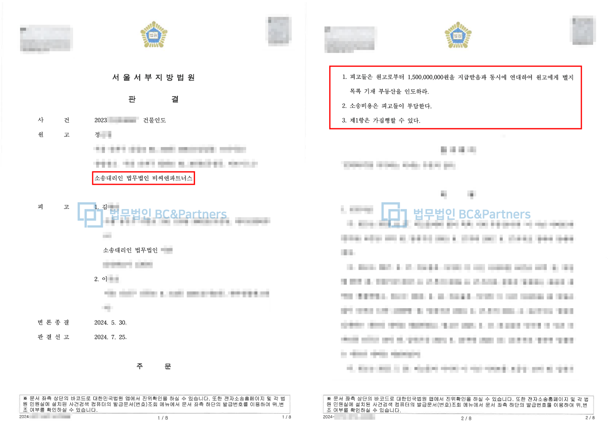 전부승소 / 서울서부지방법원 / 2024.07.25