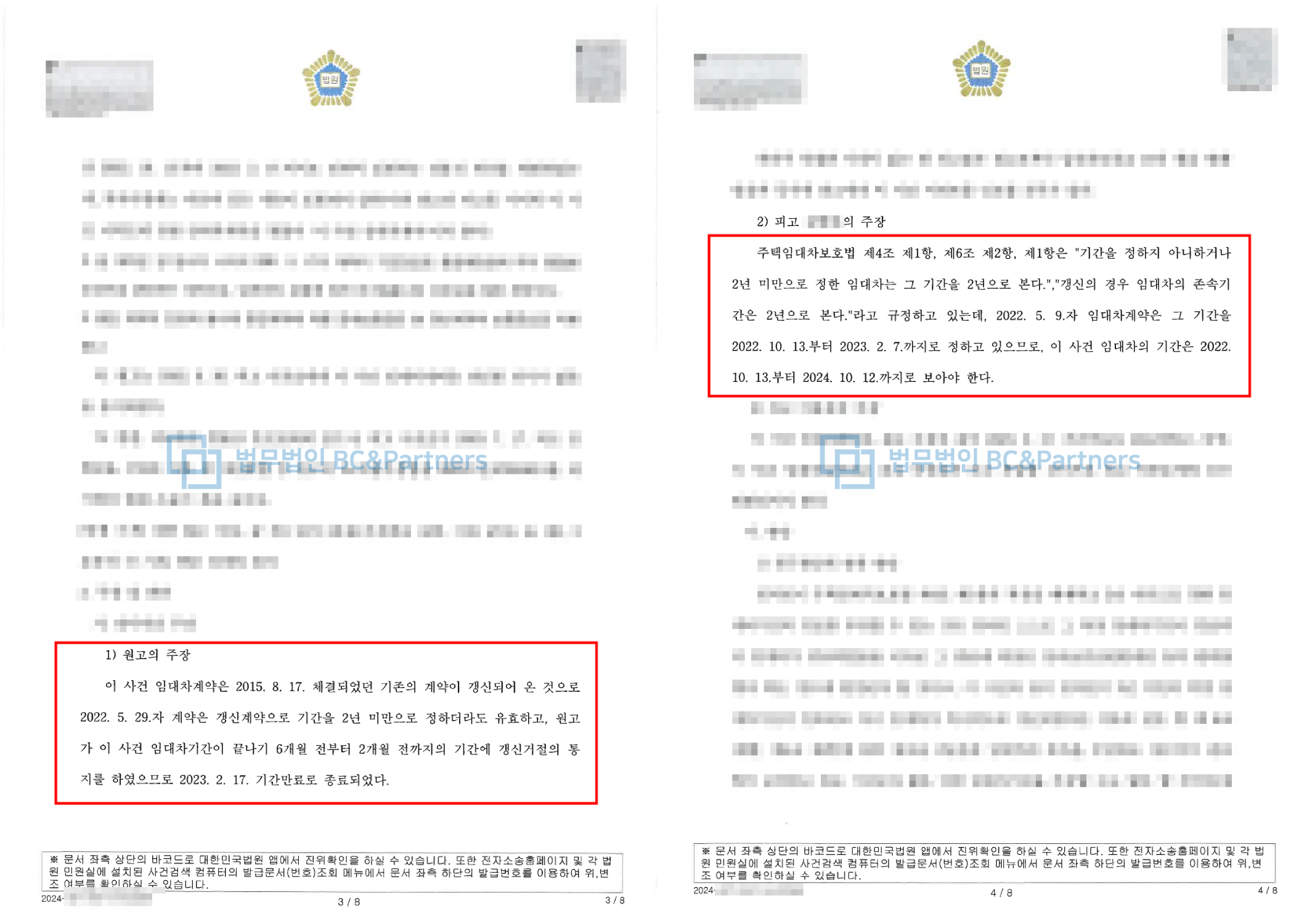 "임차인인 상대방의 요구로 2년 미만의 주택임대차 계약을 2회 체결하여 주었지만 정작 나가야할 상황이 오자 임차인은 '2년 미만의 기간 정한 경우 2년으로 본다'는 주택임대차보호법 조항을 근거로 두 번째 체결한 임대차 계약이 아직 만료되지 않았다고 주장하였지만 그런 식이면 첫 번째 임대차 계약도 2년으로 기간 계산을 해야 하고 첫 번째 계약의 2년이 도과된 시점에 기간만료로 이미 임대차계약은 해지되었고 두 번째 임대차 계약의 만료 시점은 첫 번째 임대차 계약을 2년으로 보는 시점 이전에 이미 기간 만료가 되었고 최근의 갱신의 의사표시는 이미 첫 번째 임대차계약이 기만만료되어 해지 된 이후에 한 의사표시로 결국 현재 시점에는 임대차계약이 해지된 것이 맞다는 원고측 주장이 받아들여져 승소한 사안"