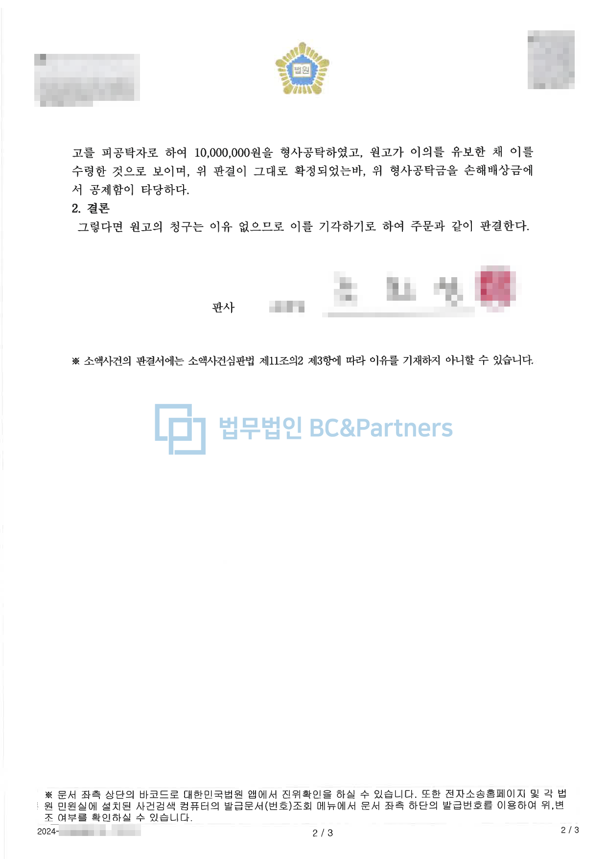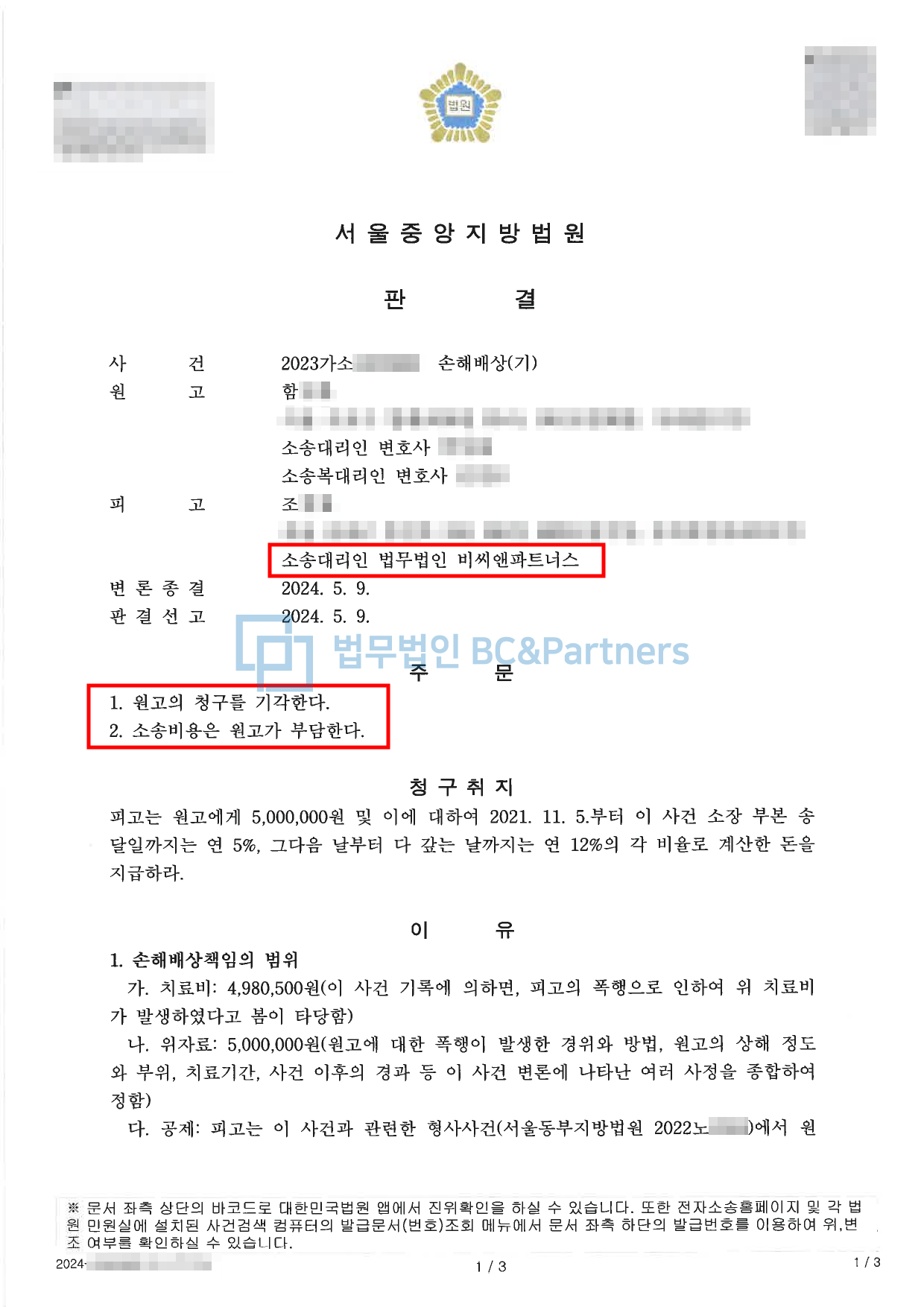 상대방(원고)청구 전부기각 / 서울중앙지방법원 / 2024.05.09.